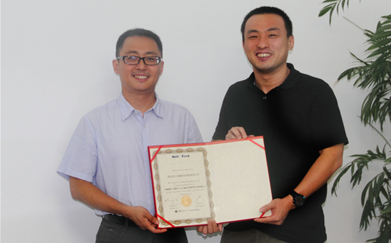 ? ? ? ? ? ? ? ? ? ? ? ? ? ? ? ?圖為主任評(píng)估師劉海笑為卓越科技頒發(fā)CMMI3認(rèn)證證書