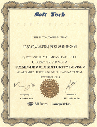 卓越科技自2011年首次獲得CMMI3認(rèn)證證書之后,一直堅(jiān)持生產(chǎn)標(biāo)準(zhǔn)化、流程過程化、管理科學(xué)化,堅(jiān)定不移地貫徹CMMI3的過程能力的要求,進(jìn)一步全方位提升企業(yè)的開發(fā)能力和水平。卓越科技再次通過CMMI3認(rèn)證證明公司的開發(fā)能力、管理能力和市場(chǎng)競(jìng)爭(zhēng)能力依然保持國(guó)際競(jìng)爭(zhēng)水平。