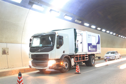 ??? “以1公里的隧道為例,人工測(cè)量約需20人耗時(shí)4小時(shí)才能完成?!蔽錆h武大卓越科技有限責(zé)任公司副總裁胡丹丹先生介紹,該公司自主研發(fā)的首臺(tái)隧道快速測(cè)量系統(tǒng)以中型卡車(chē)作為車(chē)載平臺(tái),在平臺(tái)上安裝多個(gè)精密傳感器,時(shí)速可達(dá)80公里/小時(shí),每日檢測(cè)里程可達(dá)約500公里,裂縫精度達(dá)到0.2毫米,只需要一名司機(jī)和一名技術(shù)操作人員,通過(guò)無(wú)損檢測(cè)的方式完成所有隧道綜合數(shù)據(jù)的采集工作。