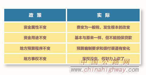 ??在開征燃油稅以前,我國公路養(yǎng)護資金大都來自于公路養(yǎng)路費。進行燃油稅費改革時,交通部門與財政部門就燃油稅達成了“4個不變”的共識:資金屬性不變、用途不變、預(yù)算程序不變、事權(quán)不變。然而,在實際執(zhí)行過程中,“4個不變”都發(fā)生了變化。燃油稅不再是部門資金,它變成了一種消費稅——燃油稅的全名為燃油消費稅。它既不是被普遍理解成的燃油附加,也不是專門給交通行業(yè)使用的——從“費”變成“稅”,它的性質(zhì)發(fā)生了根本的變化。令人稍感欣慰的是,當初財政部承諾的資金用途不變,目前看來基本屬實。但是,這項資金從費變成稅后,再也不能進行融資擔保,使得公路發(fā)展資金的來源大大收窄?!邦A(yù)算程序不變”,這是根本不可能實現(xiàn)的。以前養(yǎng)路費用于養(yǎng)路,不需要編制預(yù)算?,F(xiàn)在養(yǎng)護資金納入公共財政之后,必須編制預(yù)算——資金渠道發(fā)生了變化。