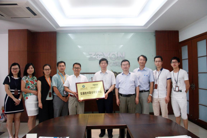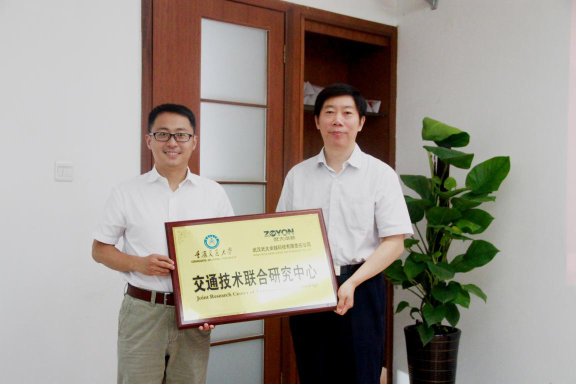 在受聘儀式上,武大卓越董事長兼總裁曹民先生首先向重慶一行領(lǐng)導(dǎo)及老師表示熱烈的歡迎,進(jìn)而簡單介紹了卓越科技發(fā)展?fàn)顩r及戰(zhàn)略轉(zhuǎn)型。王平義校長介紹了重慶交通大學(xué)歷史及發(fā)展情況,且描繪了雙方合作方向藍(lán)圖。隨后,由王平義校長給武大卓越“交通技術(shù)聯(lián)合研究中心”進(jìn)行授牌,并向曹民先生頒發(fā)了重慶交通大學(xué)兼職教授聘書。最后雙方就如何做好“產(chǎn)學(xué)研合作”,充分發(fā)揮“產(chǎn)學(xué)研合作基地”“實(shí)踐教育基地”和“研究生教育創(chuàng)新基地”進(jìn)行了深入交流探討。