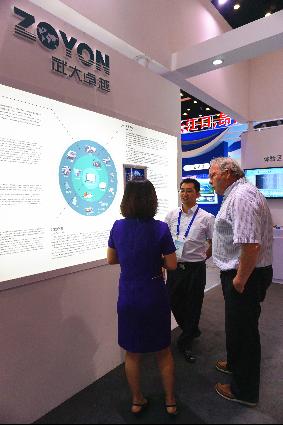 展會(huì)中武大卓越自主研發(fā)的交通資產(chǎn)管理平臺(tái),以交通資產(chǎn)“一張圖”為理念,結(jié)合交通大數(shù)據(jù)、云計(jì)算等前沿科技,獲得了眾多嘉賓的關(guān)注和贊許。圖為武大卓越董事長(zhǎng)兼總裁曹民先生與到場(chǎng)領(lǐng)導(dǎo)和行業(yè)資深專(zhuān)家交流交通全資產(chǎn)平臺(tái)。