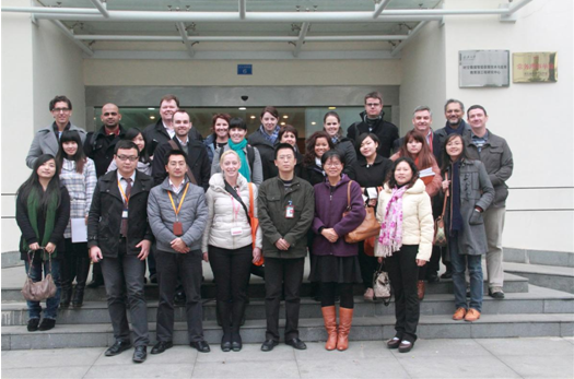 迪肯商學(xué)院和中國地質(zhì)大學(xué)一行于卓越科技大門前合影