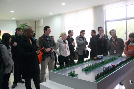 陪同過程中,事業(yè)部經(jīng)理盧毅及首席科學(xué)家工作室陳振興博士向其詳細(xì)講解了激光動態(tài)彎沉測量系統(tǒng)的產(chǎn)品原理、系統(tǒng)功能及目前取得的成果,并引領(lǐng)其觀看和講解了彎沉測量系統(tǒng)設(shè)備模型演示方案及彎沉測量系統(tǒng)工作界面方案。隨后移步于生產(chǎn)車間,觀看了卓越科技另一自主研發(fā)的智能道路檢測系統(tǒng)。迪肯商學(xué)院代表們對其非常感興趣并有秩序地登上智能道路檢測系統(tǒng),觀看智能道路檢測系統(tǒng)設(shè)備演示過程。